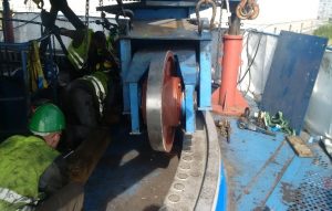 Erneuerung der Kugeldrehverbindung an einem Schiffsbelader